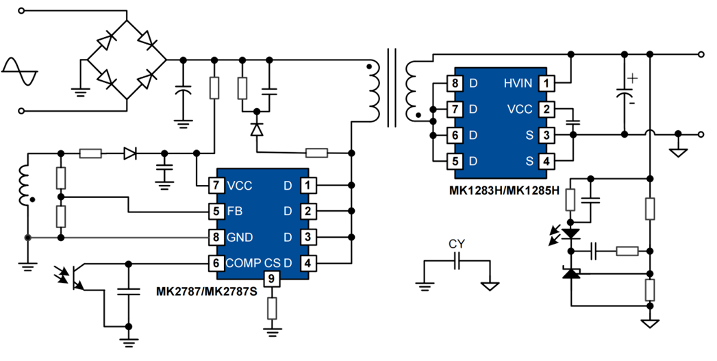 集成700V 365mΩ氮化鎵功率管的AC/DC產品